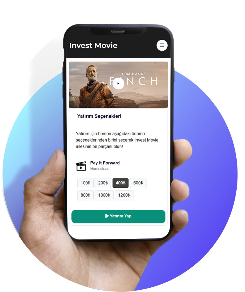 Invest Movie, küresel film endüstrisinde liderdir ve Projelerin ticari ve sanatsal başarılarını hedefler. Geniş dağıtım ağıyla filmleri dünya çapında yayınlar ve katıldığınız Projelerden en az 4 yıl boyunca gelirlerin ortağı olabilirsiniz. Bu ortaklık size ticari başarıdan kaynaklanan gelirlerden pay alma imkanı sağlar ve Invest Movie'nin küresel pazarlama ve dağıtım ağından faydalanarak Projelerin uluslararası alanda tanıtılması ve satılması için avantaj sağlar.